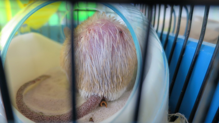 Myši mezi sebou mají velmi silné vazby, které když se poruší, nejdou vrátit. Potvrzuje to i zkušenost, kdy nám jedno z odrostlých mláďat uteklo a trvalo čtyři dny, než jsme ho našli. Samice/matka ani sourozenci už ho mezi sebe nechtěli přijmout a tvrdě ho pronásledovali jako vetřelce. Od matky jsem ho dala k samcovi (který byl momentálně sám). Samec s mládětem problém neměl, je povahově velice mírný, a tak odrostlé mládě začalo pronásledovat a napadat jeho. Nakonec jsem musela mládě oddělit, protože chovný samec byl v takovém stresu, že mu vypadaly bodliny na zádech. Obecně bylo na stavu myšáka vidět, že mu přítomnost mladého vetřelce nesvědčí. Když bylo mládě pryč, samec se během několika dnů zcela zotavil a bodliny mu po čase opět dorostly.