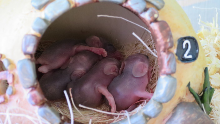 V té době už byla samice znovu březí a po třicátém dnu bylo jasné, že tentokrát jich bude víc. Rodila až 39. den, kdy břicho doslova tahala po zemi. Porodila jich celkem pět, což je dvakrát tolik než průměr. Pilně kojí už dva týdny a mladí prospívají.